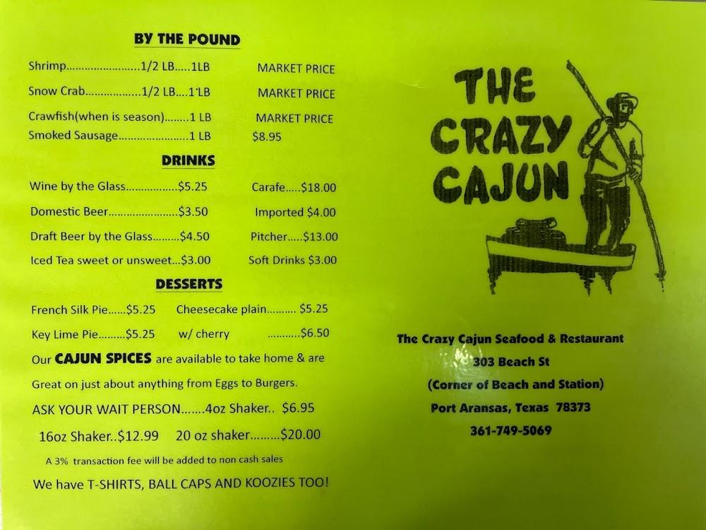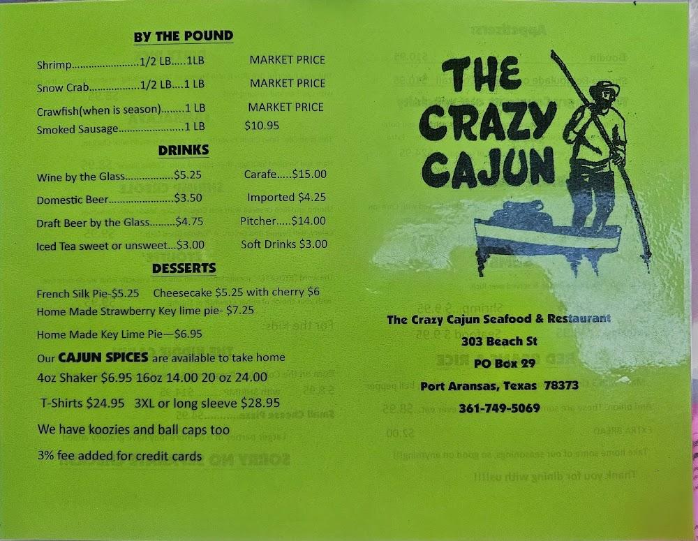Welcome to The Crazy Cajun Seafood Restaurant, your go-to destination for a delightful dining experience in Port Aransas, TX! Located at 303 Beach St, our eatery offers a flavorful selection of seafood specialties, local dishes, and an extensive beer menu. Enjoy a relaxed atmosphere perfect for families, groups, or solo diners, with services including dine-in, takeout, and delivery. Our accessible facilities ensure everyone can enjoy a meal, and we pride ourselves on a friendly service that welcomes students and tourists alike. Join us for lunch or dinner and indulge in our delicious offerings today!